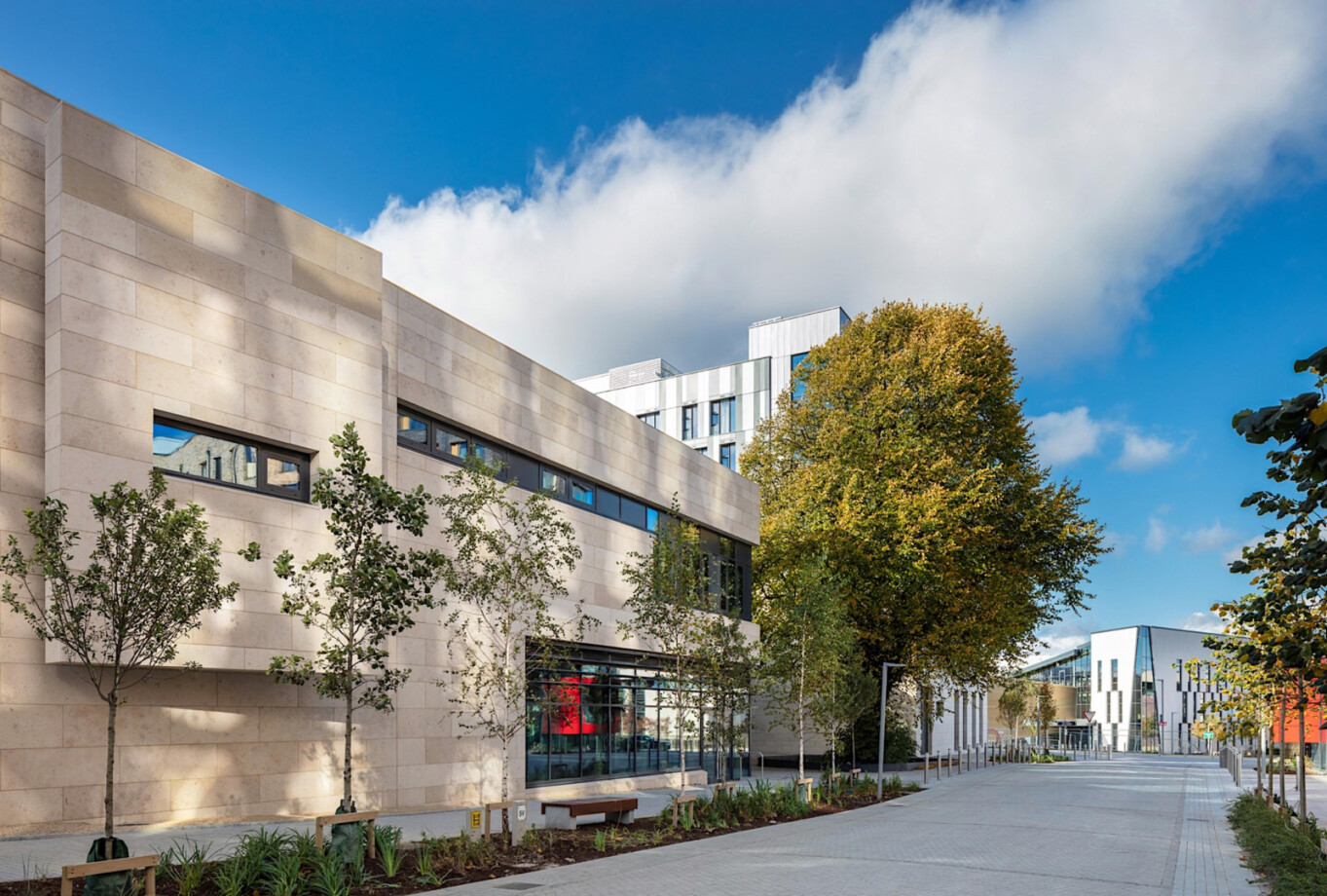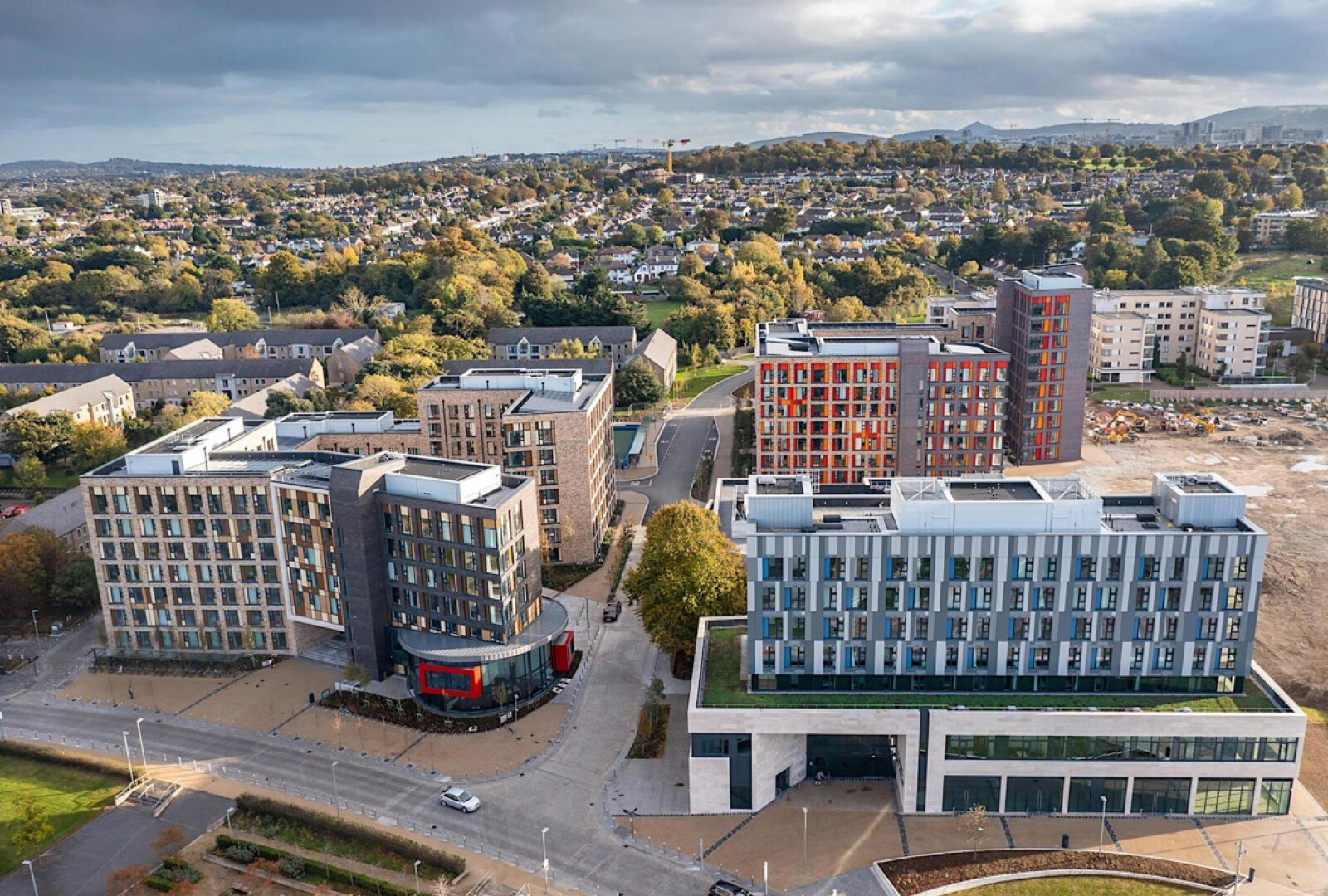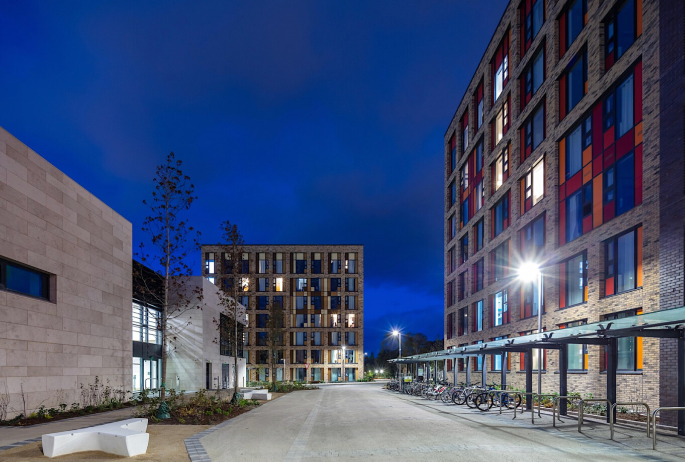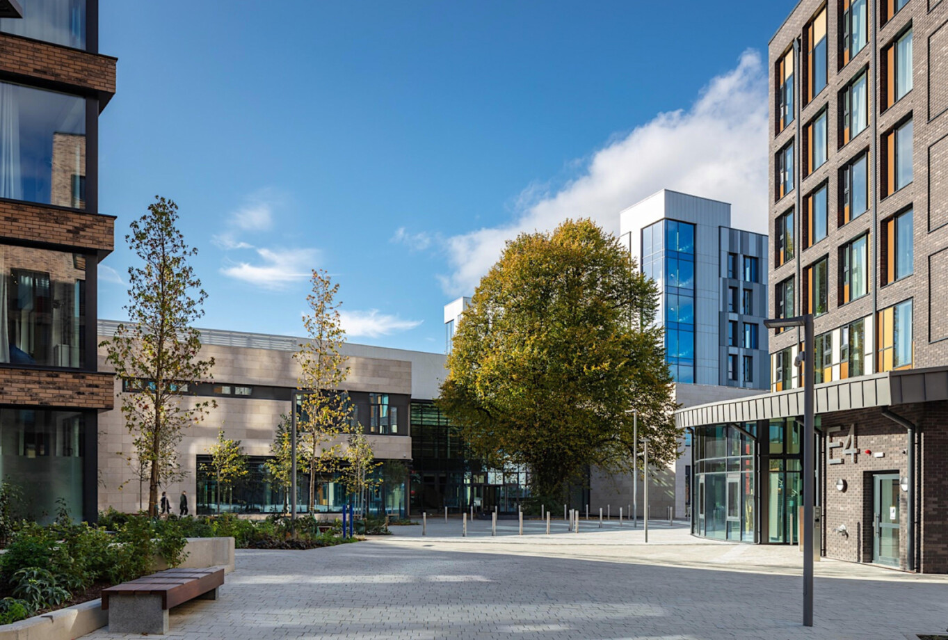 With the commencement of this next phase of the project we’ve taken the opportunity to look back and showcase completed images of Phase 1 of the masterplan (completed in 2021), which delivered 924 new student bedspaces alongside the award-winning Student Hub (UCD Village) Building.