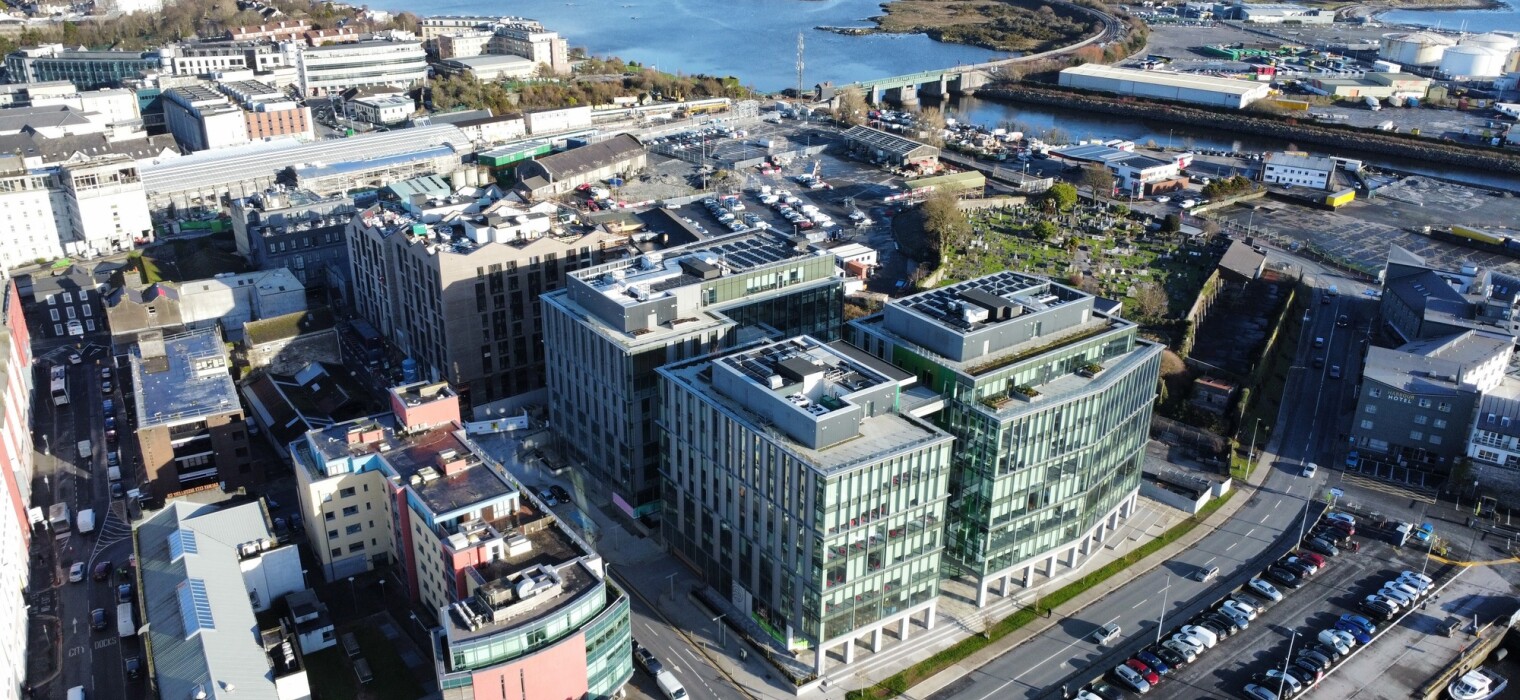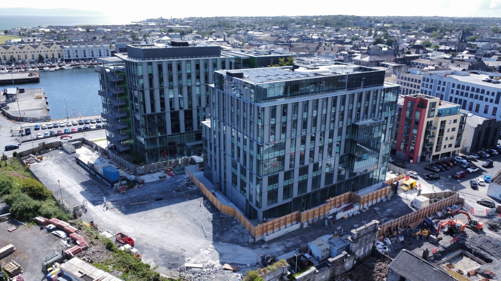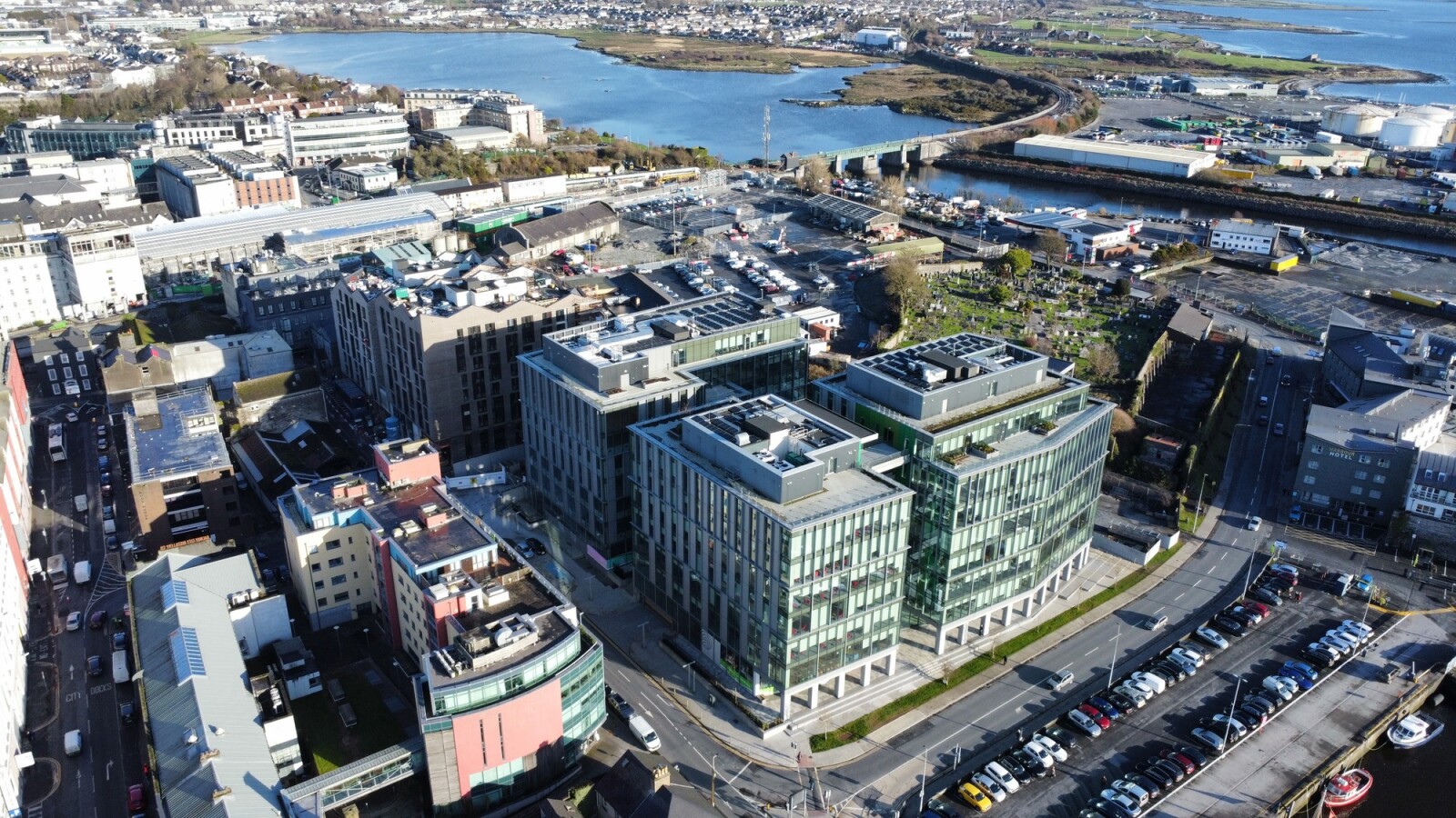 Bonham Quay is a €105 million mixed-use waterfront development on Galway’s historic docklands, transforming a former industrial site into a high-quality urban campus overlooking Galway Docks. The completed development provides approximately 34,400 sq m of office, retail, restaurant and cultural space across four office buildings, arranged around two new public squares and linked by landscaped bridges.