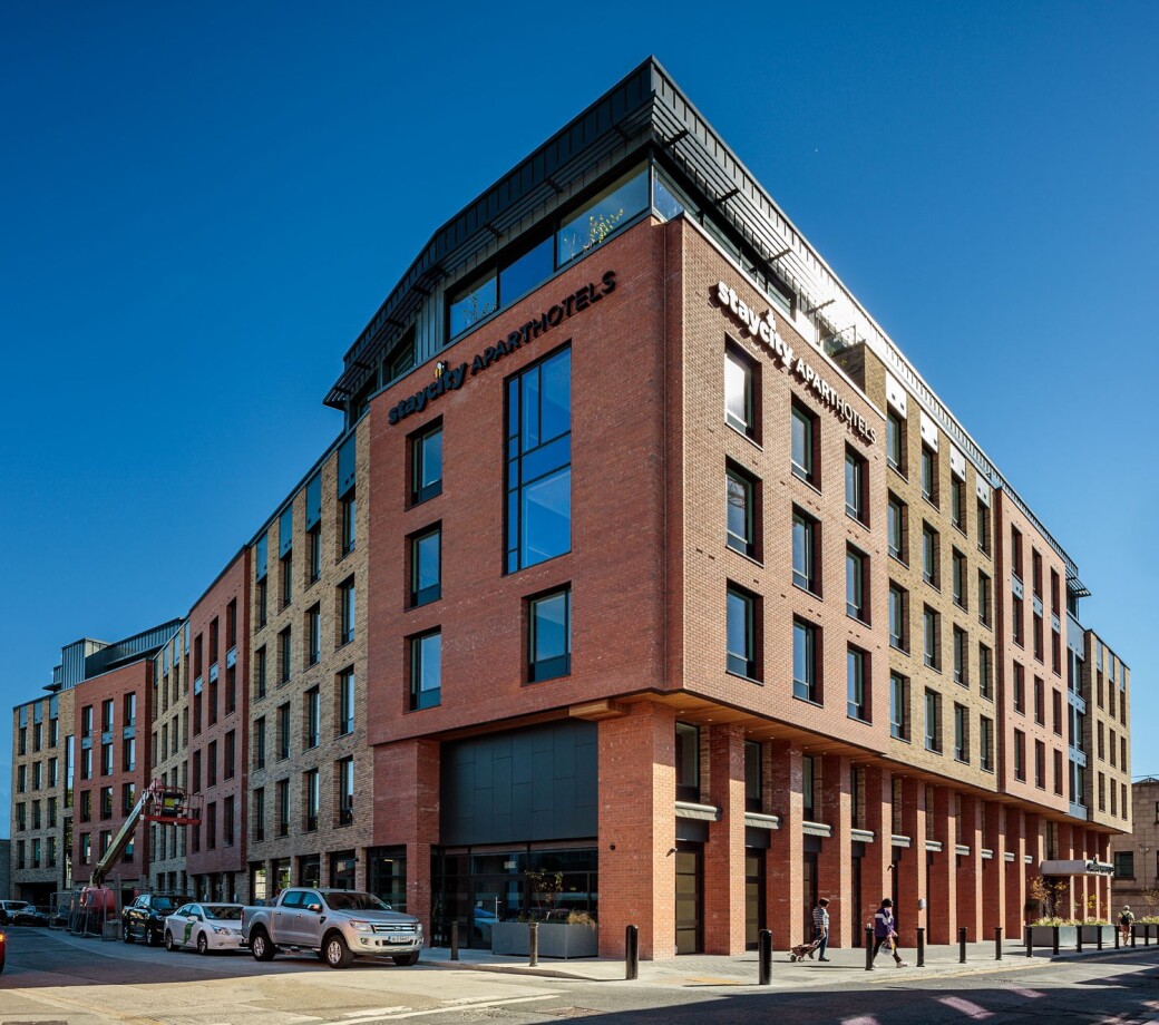 This project comprised a new 340 bed aparthotel in the historic Markets Area of Dublin City Centre for Staycity. Ground floor reception and cafe, retail unit and artist studios make for a lively streetscape close to the main Mary Street and Henry Street thoroughfare.