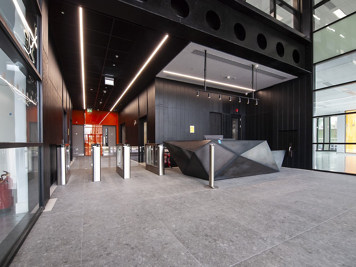 The superstructure consists of a structural steel frame with laong span cellular beams which form a typical floor plate grid of 15m * 7.5m, achieving large “column free” floor plates.
