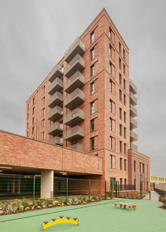 Transport House forms part of the vibrant regeneration of the Dagenham area, contributing to the transformation of a historically industrial landscape. Located on a brownfield site adjacent to the former Ford stamping plant, the development symbolises a new chapter for post-industrial Dagenham. The project delivers 149 residential units on the former Union trade union site, situated south of New Road. It also includes landscaped podium areas constructed above undercroft car parking that serves an adjacent hotel, enhancing both functionality and urban design. The structural system comprises a precast concrete superstructure supported by an in situ concrete transfer structure and foundations, optimising buildability, material efficiency, and minimising on-site disruption. The integration of landscaped podiums and undercroft parking supports activated ground floor spaces, external amenity provision, and seamless service integration. Transport House is a prime example of sustainable land use and urban regeneration, demonstrating how thoughtful engineering can support architectural ambition and community revitalisation.